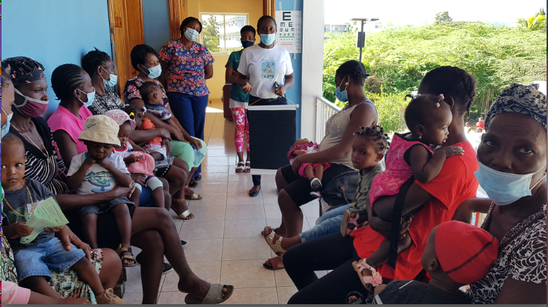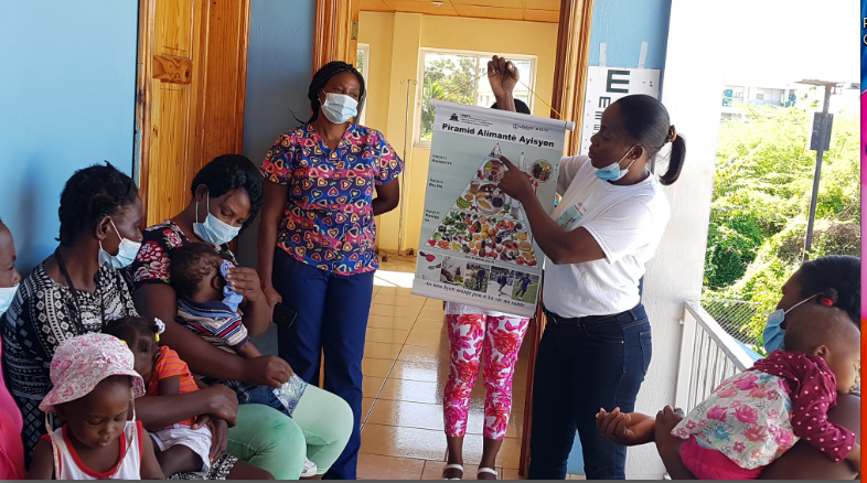 Clinique Espérance et Vie is educating the community about nutrition and health. The moms and kids below are learning about good nutrition from Clinic staff. The Clinic also monitors patients for malnutrition and provides assistance if detected.